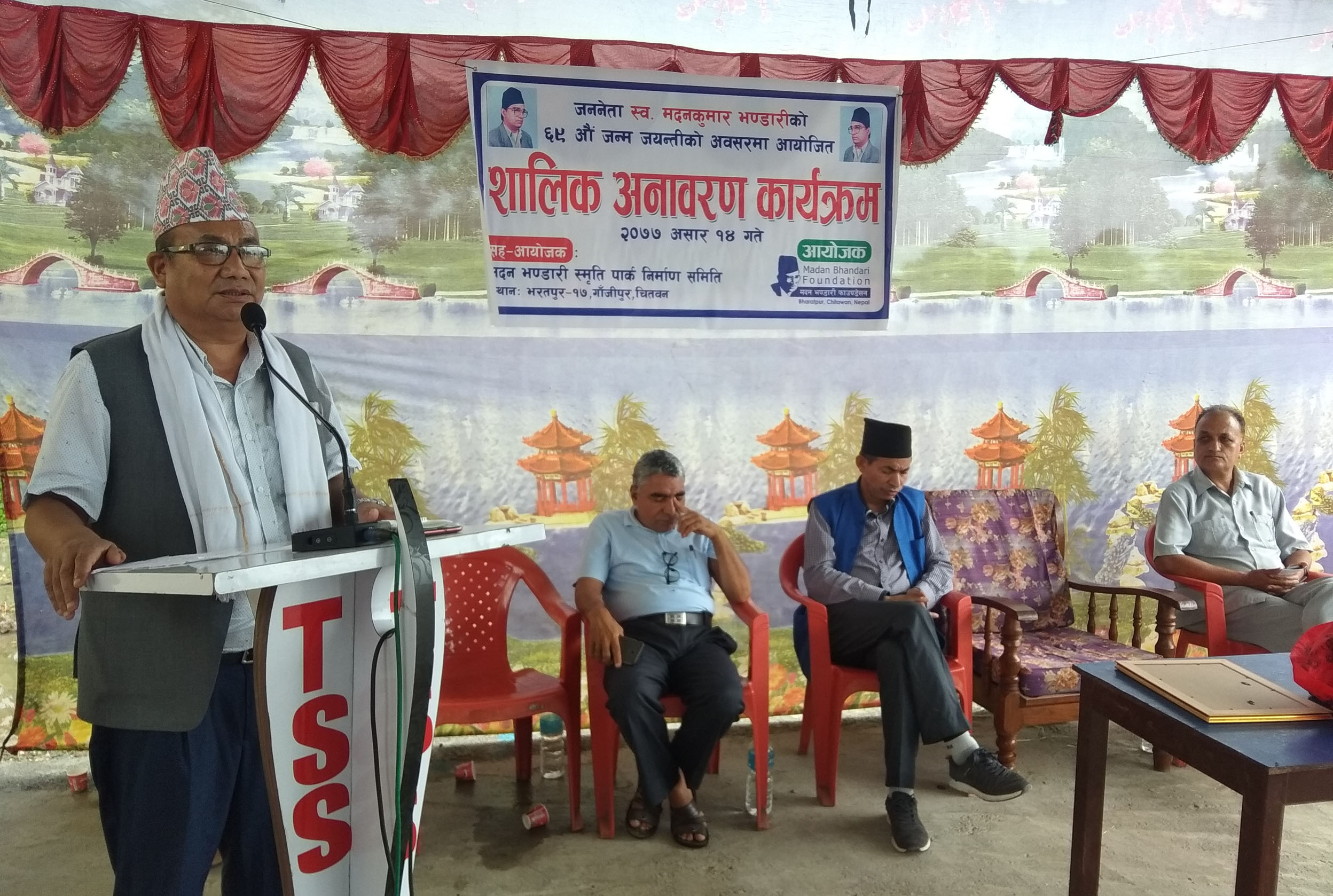 कार्यक्रममा नेकपा नेता हरि सापकोटा, प्रदेश सांसद कृष्णप्रसाद भूर्तेल, फाउण्डेशन चितवनका अध्यक्ष डा. तिलचन्द्र भट्टराई, सचिव श्याम बिष्ट, भरतपुर १७ का वडा अध्यक्ष ललितमान तामाङ, मदन स्मृति पार्कका अध्यक्ष गौरस तामाङ, टोकमान गुरुङ लगायतले बोल्नु भएको थियो ।