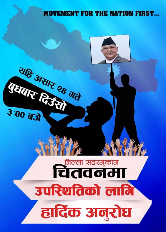 एकै दिन पारेर चितवन सहित देशका विभिन्न जिल्लाहरुमा वर्तमान सरकारको निरन्तरताको माग गर्दै दवावमुलक कार्यक्रमको आयोजना गरिएको छ ।