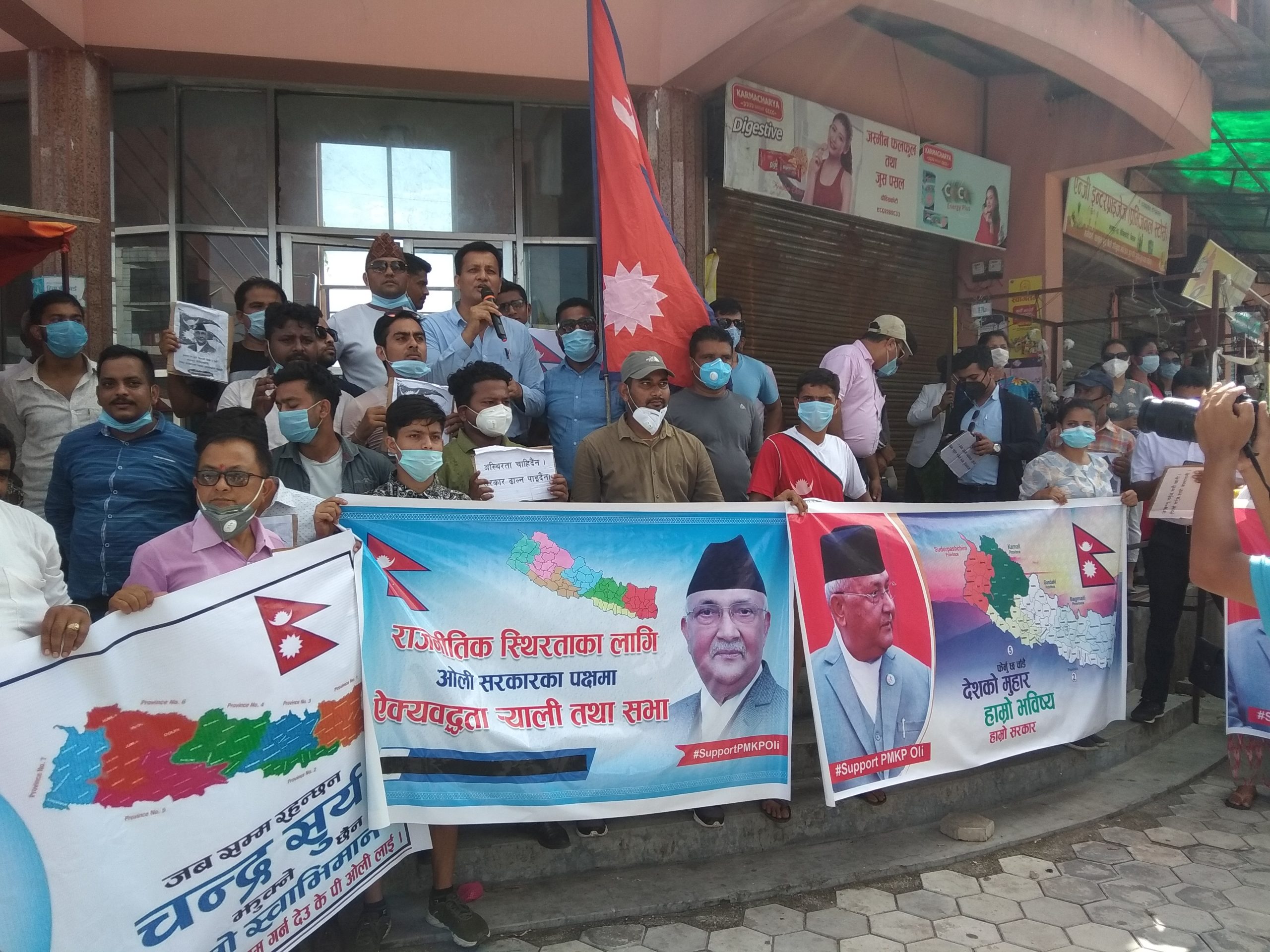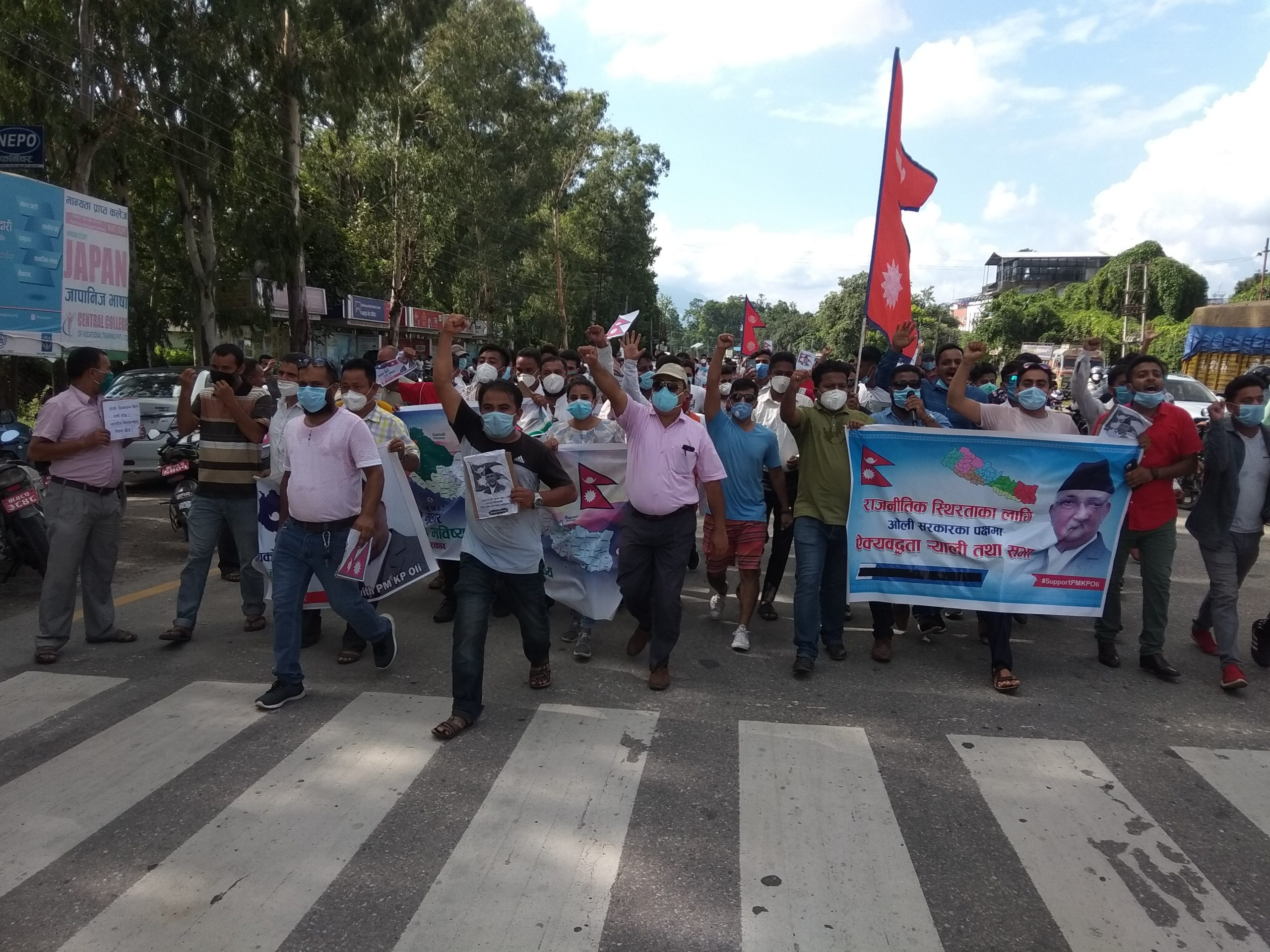 वर्तमान सरकारको पार्टीभित्रबाटै राजीनामा मागिएपछि त्यसको विरोधमा भरतपुरमा युवा, विद्यार्थीहरुले प्रदर्शन गरेका हुन् । असारको चर्को घामको परवाह नगरी सयौ युवाहरु बुधबार दिउँसो भरतपुरको चौबीसकोठीमा राष्ट्रिय झण्डा, नेपालको नक्सा र केपी ओलीको फोटो सहित प्रदर्शनमा उत्रिएका थिए । उनीहरुले स्थिरता झल्किने नारा अंकित प्लेकार्ड बोकेका थिए ।