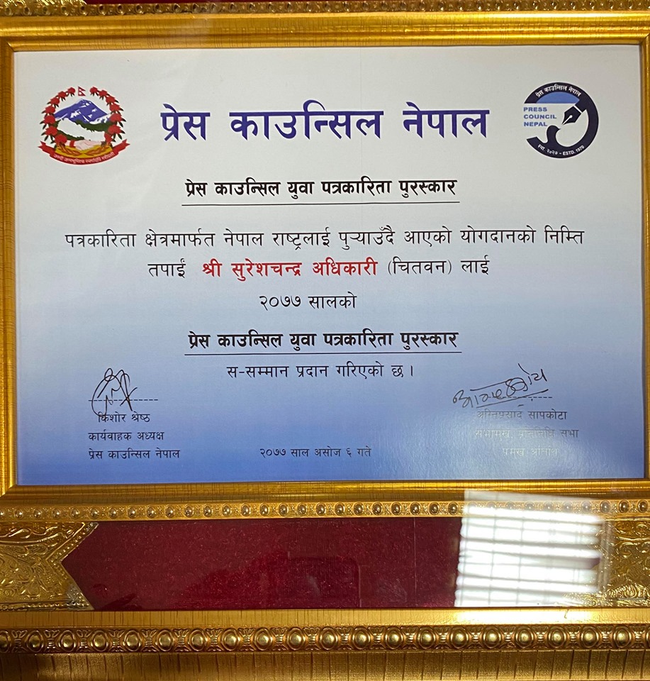 प्रेस काउन्सिल युवा पत्रकारिता पुरस्कार सुरेश अधिकारीलाई