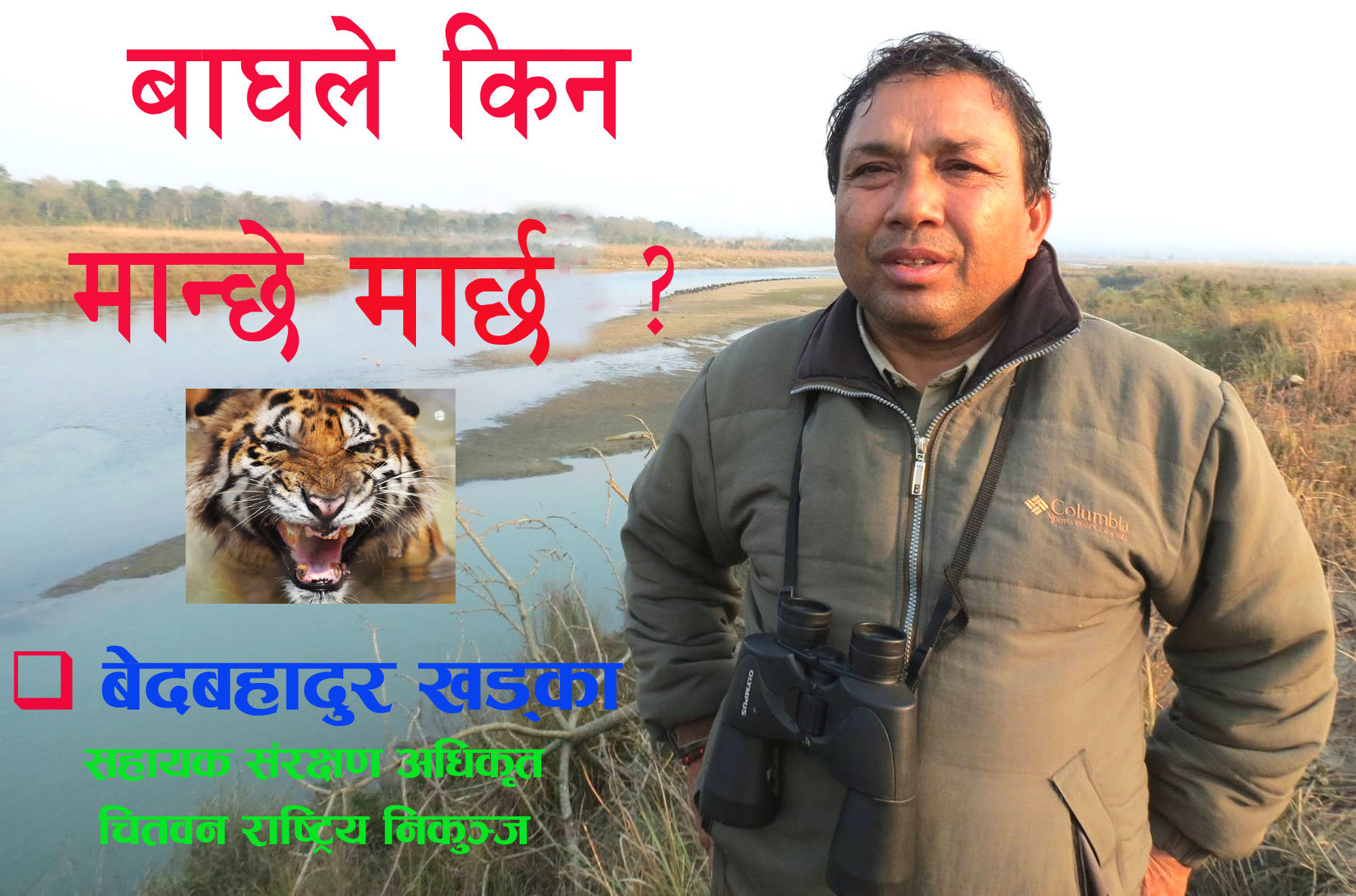 उहिले–उहिले प्रकृतिमाथि मानिसका धेरै समस्या थिए, तर आज आएर मानिस नै प्रकृतिलाई समस्या भइरहेको छ । त्यसैले स्वस्थ पर्यावरणका लागि विश्वमा छरिएर रहेका मानवले जहाँ जे जस्तो प्राकृतिक सम्पदा छ, त्यसलाई बचाउनु उनीहरूको कर्तव्य हुन आउँछ । किनभने, यदि यी सम्पदा नबचाईकन मानिस एक्लै यस पृथ्वीमा बाँच्ने भइदिएको भए उहिल्यै प्राकृतिक सम्पदा सकिसकेको हुन्थ्यो र प्रकृति बचाउनुपर्ने जरुरी पनि पर्दैनथ्यो होला । कुनै जमानामा पूर्वी तराईका चुरे वनजंगलमा प्रशस्त पाइने बाघ चुरे विनाशसँगसँगै बाघ विनाश भयो, जसको फलस्वरूप बाढी, पहिरो, भूक्षयले त्यस क्षेत्रलाई अक्रान्त बनाएको छ । जमिनमुनिको पानीको सतह गहिरिएर गएको छ, तर त्यही चुरे हो, चितवनवासीका लागि खुसीको कुरो छ, किनभने चुरे राम्रोसँग संरक्षण भएको छ र यहाँ बाघ छ । त्यसैले यस धर्तीलाई स्वच्छ हराभरा बनाइराख्न तराईमा बस्नेले बाघ, मध्यपहाडमा बस्नेले चितुवा र हिमालमा बस्नेले हिउँचितुवा बचाउनु हाम्रो दायित्वभित्र पर्दछ । अनि मात्र स्वच्छ पर्यावरण स्वस्थ नेपाल’ भन्न सुहाउँछ । हाम्रा अग्रजले खोलानाला, नदीको पानी विनापैसा पिएका थिए भने प्रदूषणले गर्दा आज हामी मिनरल बोतलका पानी किनेर पिउनु परिरहेको छ । अझै पनि पर्यावरण बचाउन चुक्यौँ भने भोलिका दिनमा गएर अक्सिजन घाँटीमा झुन्ड्याएर हिँड्नुपर्ने दिन नआउला भन्न सकिँदैन । त्यसैले बाघ स्वस्थ पर्यावरणको सूचक हो, यसको संरक्षणमा हातेमालो गरौँ । (खड्का चितवन राष्ट्रिय निकुञ्जका सहायक संरक्षण अधिकृत हुनुहुन्छ ।)