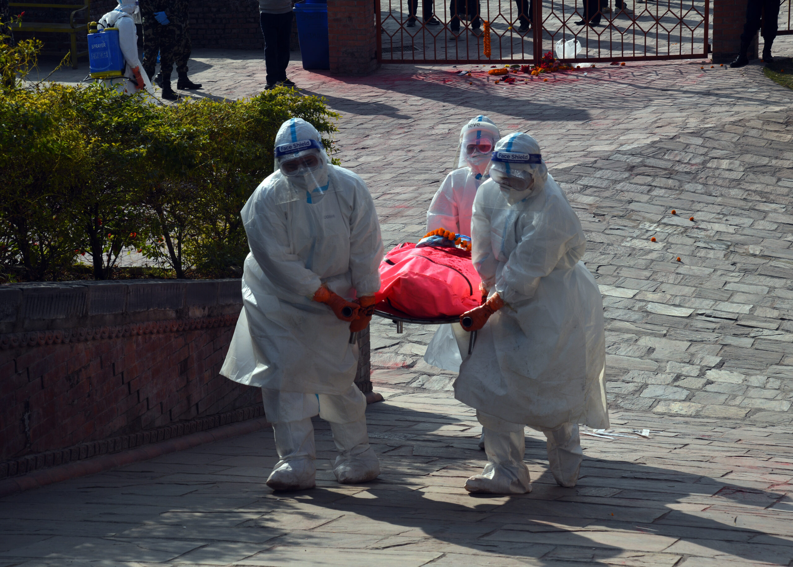 काठमाडौँ, पुस १ । कोभिड¬१९ सङ्कट व्यवस्थापन समिति (सिसिएमसी) बाट हरेक दिनजसो नेपाली सेनाको कोभिड डेस्कमा सङ्क्रमित व्यक्तिको मृत्यु भएको खबर आइरहन्छ । मृत्युको खबर आउनासाथ नेपाली सेनाको उपत्यका पृतनाले तालीमप्राप्त सैनिक टोलीलाई तम्तयार हुन निर्देशन दिन्छ । कमाण्डरको साथमा निर्देशनप्राप्त टोली विलम्ब नगरी शव लिन हतारहतार अस्पताल पुग्छ । टोलीमा मोर्चा सम्हाल्नेमध्ये उपत्यकामा दुईवटा महिला समूह पनि सधैँ तयारीको अवस्थामा रहेका हुन्छन् ।
