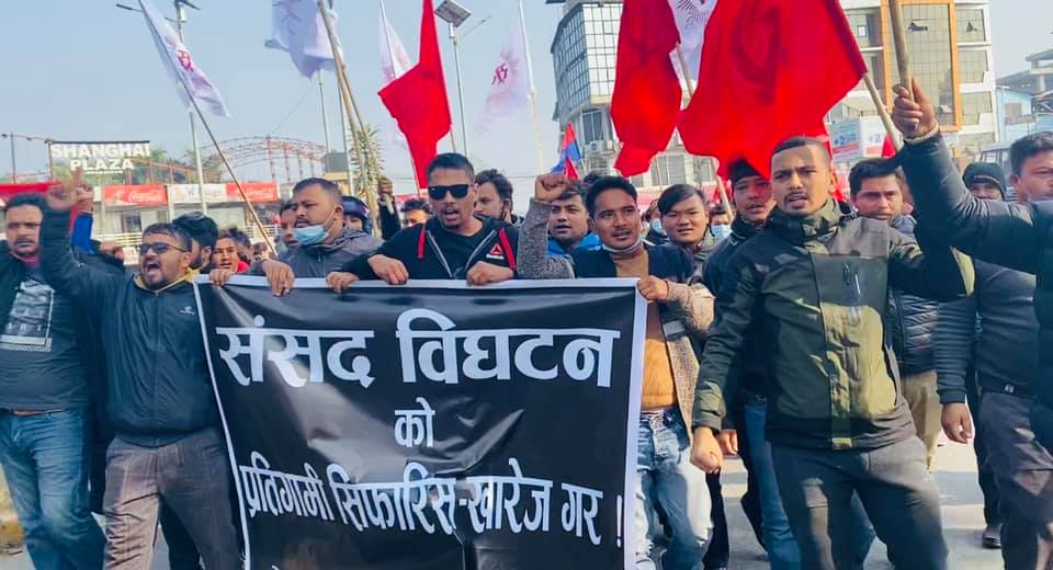 उनिहरुले संसद विघटन खारेज गर्न माग गर्दै प्रधानमन्त्री केपी शर्मा ओलीविरुद्ध चर्को नाराबाजी गरेका थिए । भेलालाई सम्बोधन गर्दै युवा संघका जिल्ला संयोजक मधु न्यौपानेले प्रधानमन्त्री ओलीले सिफारिस गरेको संसद विघटन प्रस्ताव संवैधानिक ‘कू’ भएको भन्दै खारेजको माग गरे ।