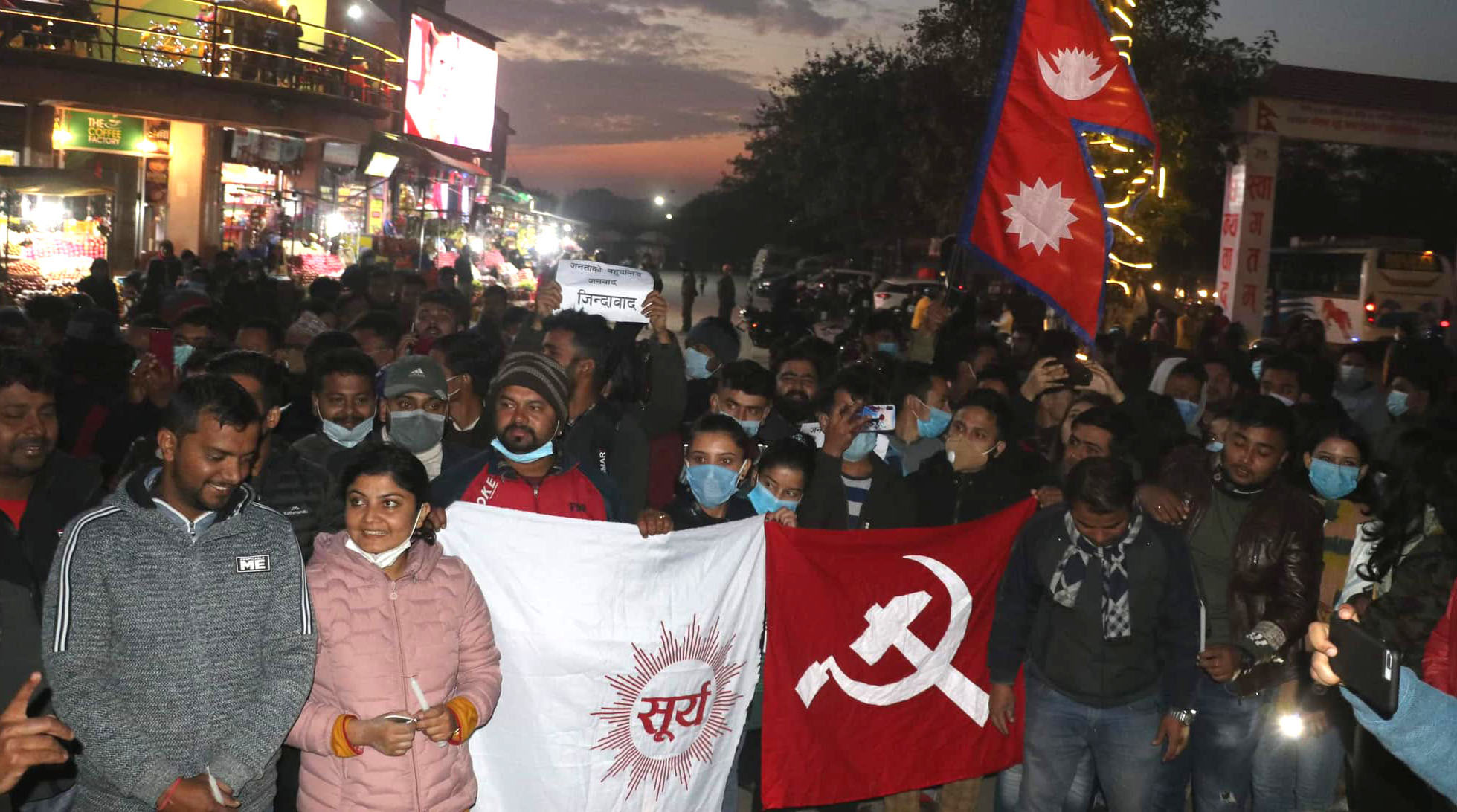चितवन, ७ पुस । नेपाल कम्युनिष्ट पार्टी (नेकपा) का अध्यक्ष एवम् प्रधानमन्त्री केपी शर्मा ओलीको समर्थनमा आज मंगलबार भरतपुरको चौबीसकोठीमा प्रदर्शन भएको छ । ओलीका समर्थकहरुले भरतपुरस्थित चौविसकोठीमा साँझ दीपावली गरेसंगै प्रदर्शन गरेका हुन् । उनीहरुले केपी ओली जिन्दाबाद, नेकपा जिन्दावाद, भोट के मा ? सूर्यमा, जबज जिन्दावाद लगायतका नारा लगाएका थिए । कार्यक्रममा युवा विद्यार्थीहरुको बाक्लो उपस्थिति रहेको थियो ।