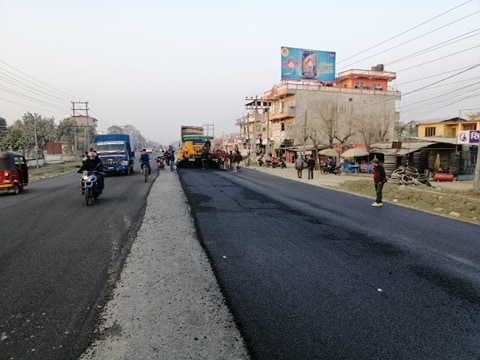 प्रधानमन्त्री ओली चितवन आउने भएपछि वर्षाैदेखि अलपत्र वाइपास सडक धमाधम कालोपत्रे
