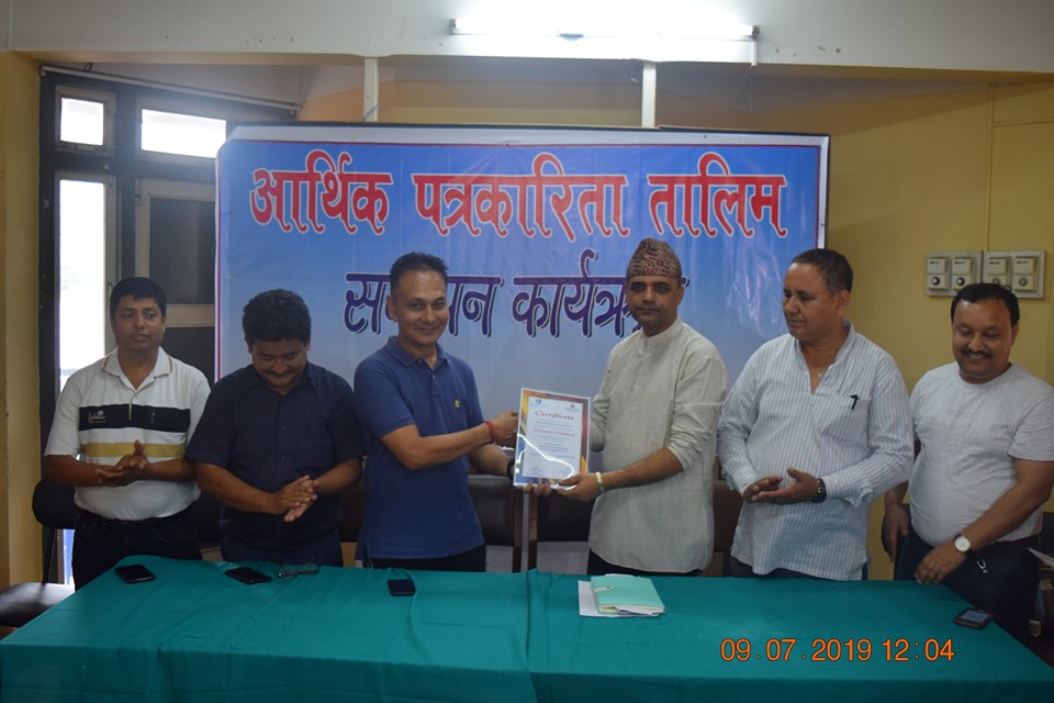 नारायणगढ । नेपाल पत्रकार महासंघ चितवन शाखा र उद्योग वाणिज्य संघ चितवनको संयुक्त आयोजनामा सञ्चालित तीन दिने आर्थिक पत्रकारिता तालिम मंगलबार सम्पन्न भयो । आइतबारदेखि शुरु भएको तालिममा जिल्लाका २८ जना क्रियाशील पत्रकारको सहभागिता रहेको थियो ।