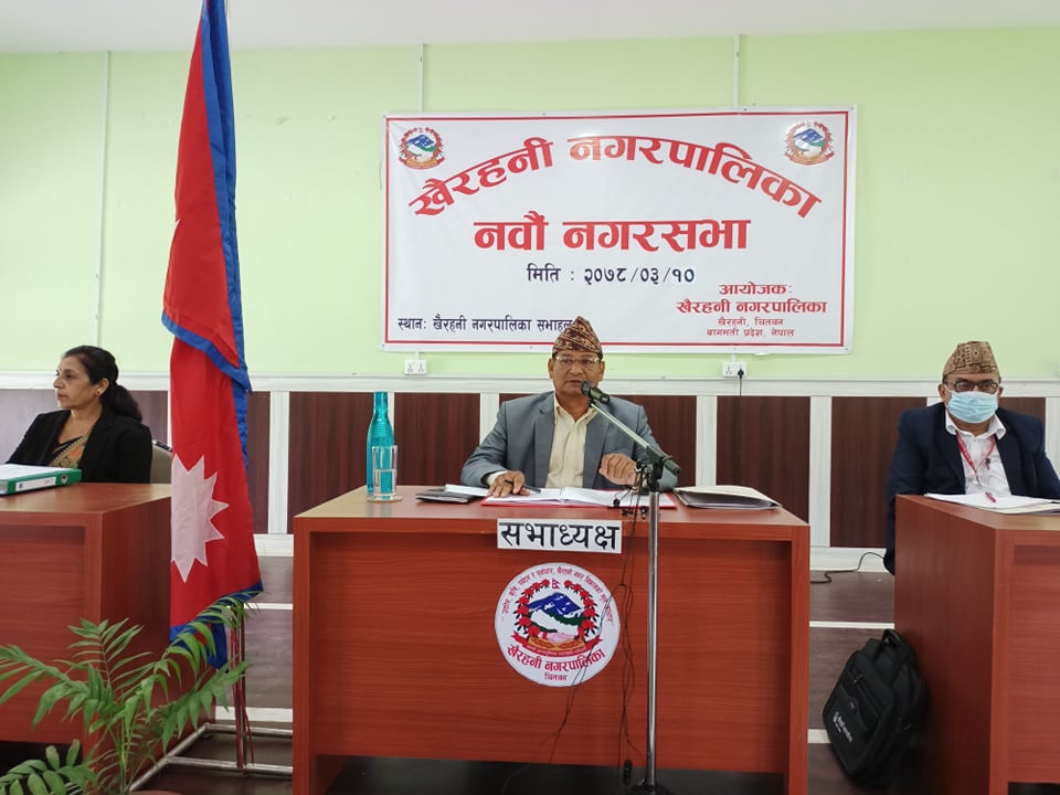 नगर सभामा नगर प्रमुख लालमणि चौधरीले प्रस्तुत गर्नुभएको आर्थिक र विनियोजन विद्येयक सर्वसम्मतले पारित भएको नगरपालिका प्रमुख प्रशासकीय अधिकृत चन्द्रकान्त न्यौपानेले जानकारी दिनुभयो । खैरहनी नगरपालिका संघीय मामिला तथा सामान्य प्रशासन मन्त्रालयले गरेको कार्य सम्पादन मूल्याङ्नमा चितवनको उत्कृष्ट तथा वागमती प्रदेशको चौथौं नगरपालिका बनेको थियो ।
