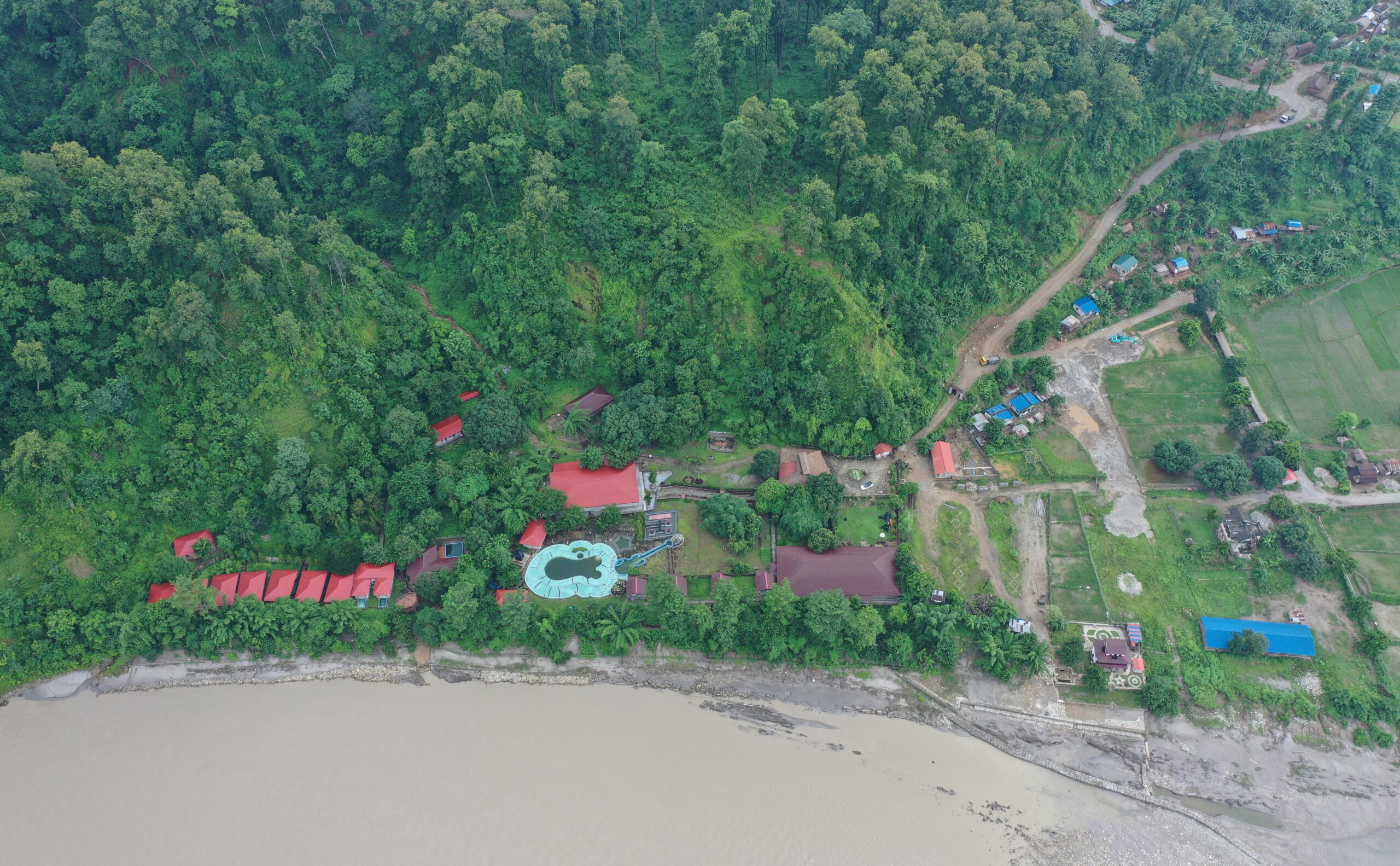 रिसोर्टको आडैमा आफ्नो पुख्र्यौली घर लमजुङको राइनास क्षेत्रमा हुने पहाडी शैलीको कलात्मक घर निर्माण गरिएको छ । पछिल्ला दिनमा तस्बिर लिएर सामाजिक सञ्जालमा पोष्ट गर्नेले यो घरलाई भाइरल बनाएको जनाएका छन् । सो घर पनि पाहुना बस्न मिल्ने गरी बनाइएको छ । यो रिसोर्ट भरतपुरको रामनगरबाट दुई किलोमिटरको दूरीमा रहेको छ । रिसोर्टमा हाल ३५ जना कर्मचारी रहेका छन् । तीमध्ये १० जना चितवन राष्ट्रिय निकुञ्जभित्र बन्द भएको टाइगर टप्स होटलका कर्मचारी छन् । उनीहरु भएकैले बेलायती पर्यटकले घुम्न आउने चासो देखाएको लामिछानेको भनाइ छ ।