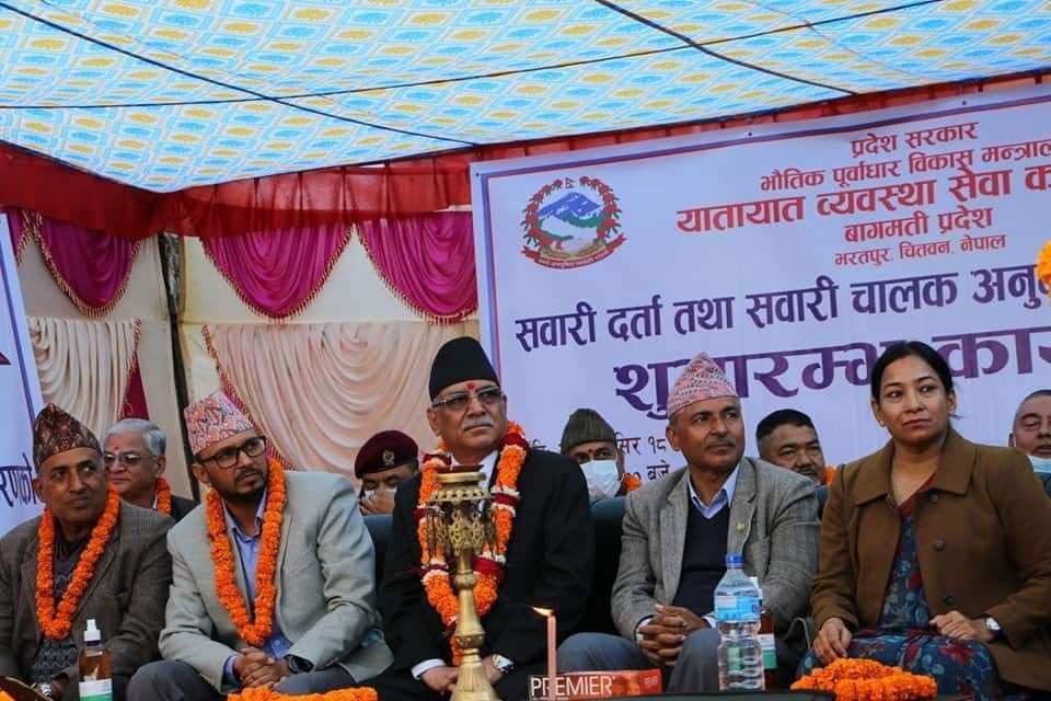 आज एक औपचारिक कार्यक्रममा स्मार्ट लाइसेन्स वितरण गर्दै अध्यक्ष प्रचण्डले यातायातका निम्ति आवश्यक पर्ने भौतिक पुर्वाधार र जमिन प्राप्तीका लागि पहल गर्ने बताउनु भयो । यातायातको क्षेत्रमा चुनौति छ, आवश्यक र सम्भावना पनि भएको बताउदै देशको केन्द्र बिन्दुमा भएको,सवारी क्षेत्रमा चाप बढेकोले यातायात सम्बन्धी सबै सेवा सुबिधा चितवनबाटै दिनु राष्ट्रको हितमा रहेको बताउनु भयो ।राष्टकै यातायात सेवालाई ब्यवस्थित,अनुशासित र बैज्ञानिक तरिकाले परिचालित गर्ने केन्द्रबिन्दु चितवन भएको प्रचण्डको भनाई रहेको छ ।
