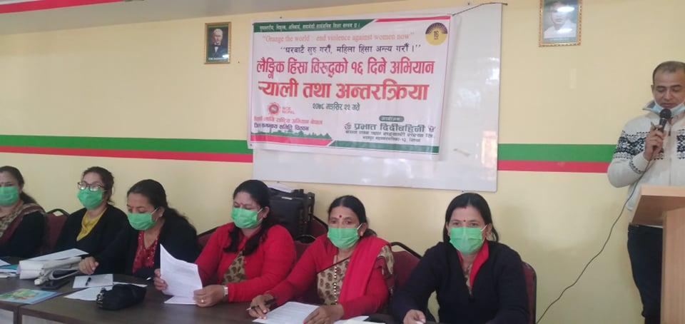 प्रभात दिदी बहिनी बचत तथा ऋण सहकारी संस्था लिमिटेड भरतपुर १२ ले १६ दिने लैङ्गिक हिंसा विरुद्धको अभियानको अवसरमा आयोजना गरेको अन्तरक्रियाका सहभागिहरुले छोरी शिक्षामा जोड दिएका हुन् ।