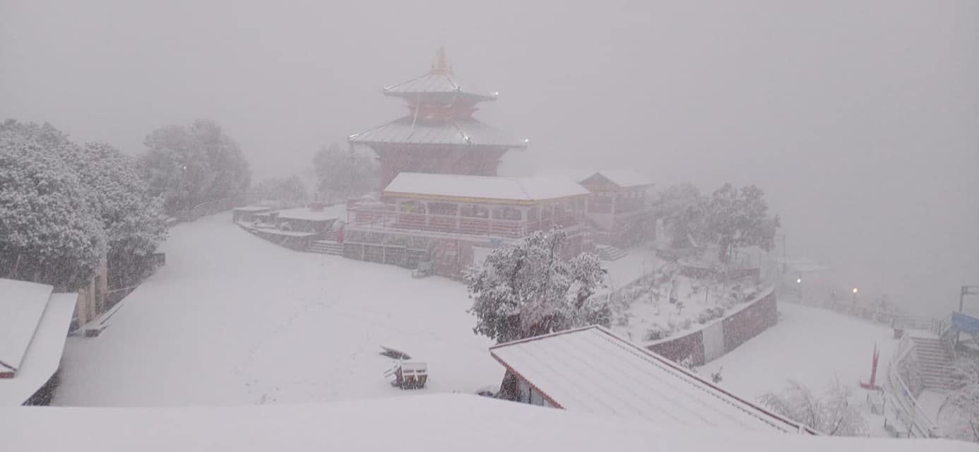 काठमाडौँ, १४ पुस । राजधानीको प्रमुख पर्यटकीयस्थल चन्द्रागिरि डाँडामा बिहानदेखि हिमपात सुरु भएको छ ।