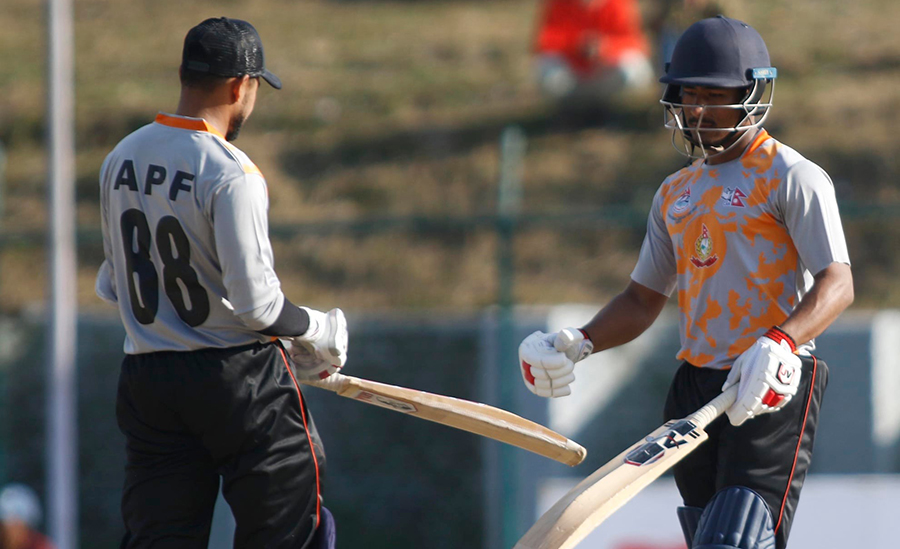 सुरुमा केही धर्मराएको एपीएफका लागि खेलको उत्तरार्धतिर ब्याटिङमा आएका खेलाडीहरूले सम्हालेका थिए । ९औं नम्बरमा आएका अमर रौतेलाले १५ बल खेल्दै तीन छक्का र दुई चौकाको मद्दतमा सर्वाधिक २९ रनको महत्वपूर्ण योगदान गरे ।