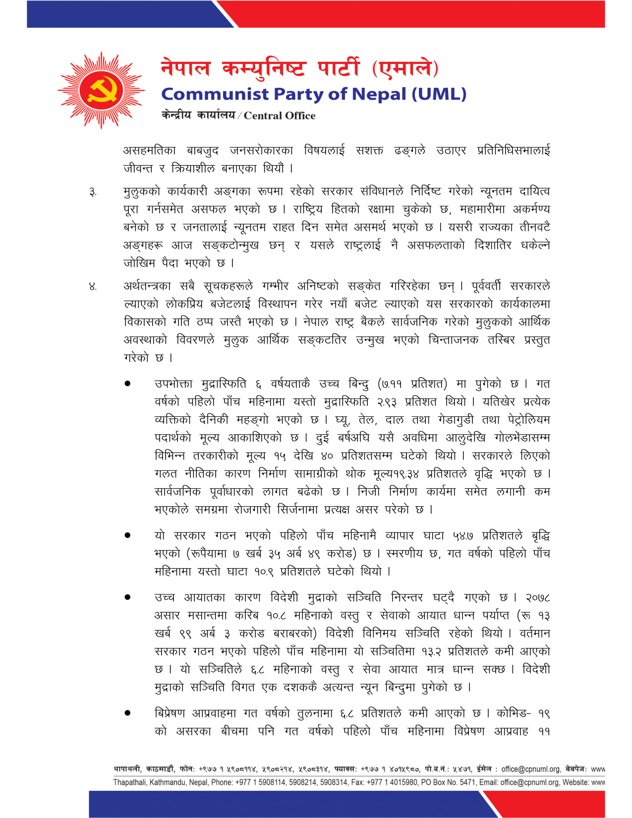 राज्यका तीनवटै अंग संकटोन्मुख : एमाले (वक्तव्यको पूर्ण पाठसहित)