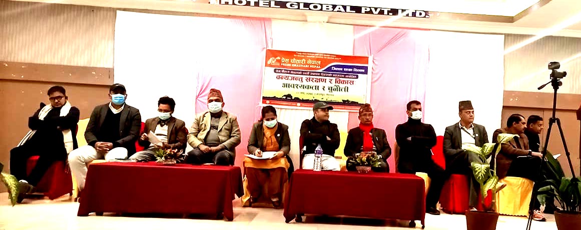 चितवन, २२ माघ । चितवन बाघ र गैंडा लगायतका वन्यजन्तुको वासस्थान रहेको र मानव उनीहरुसँग मिलेर बस्न आएको एक कार्यक्रमका वक्ताहरुले बताएका छन् । प्रेस चौतारी नेपाल चितवन शाखाले आफ्नो २४ औं स्थापना दिवसको अवसरमा आज यहाँ आयोजना गरेको “वन्यजन्तु संरक्षण र विकास : आवश्यकता र चुनौती” विषयक अन्तक्र्रिया कार्यक्रममा वक्ताहरुले वन र वन्यजन्तुको संरक्षण गर्दै अघि बढ्नु पर्नेमा जोड दिनुभएको हो । विकास जरुरी रहेको तर संरक्षण अनिवार्य भएको बताउँदै उनीहरुले संरक्षण सहितको विकासमा जोड दिए ।