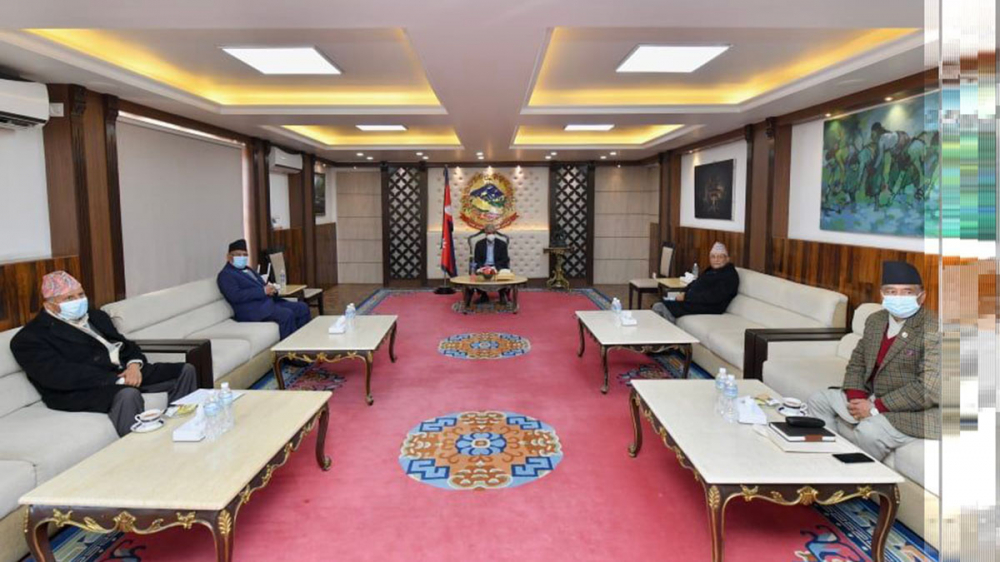 प्रधानमन्त्रीको सचिवालयका अनुसार देउवालाई भेट्न प्रचण्ड र ओली प्रधानमन्त्री निवास बालुवाटारमा पुगेका छन् । तीन नेताबीचको भेटमा एमाले महासचिव शंकर पोखरेल र सञ्चारमन्त्री ज्ञानेन्द्रबहादुर कार्की समेत सहभागी छन् ।