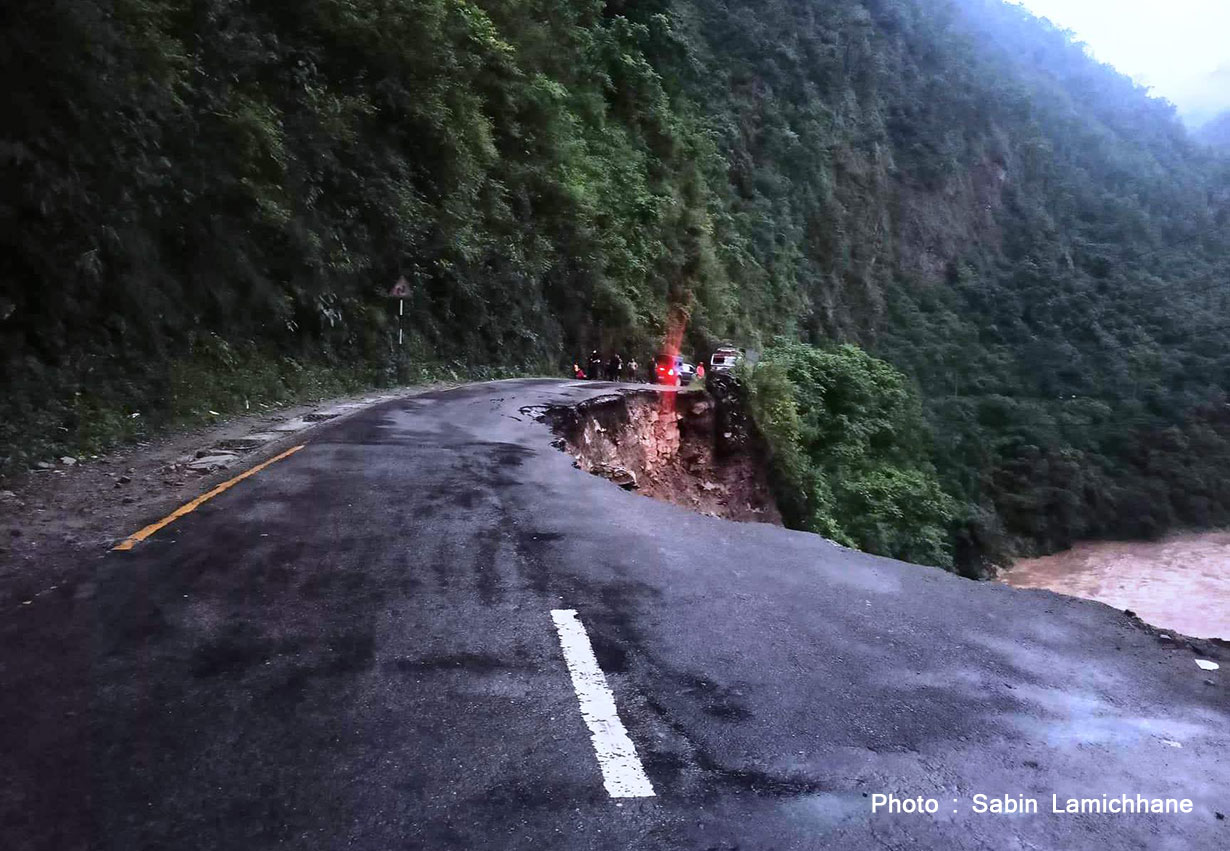 तनहुँ, २७ जेठ । पृथ्वीराजमार्ग अन्तर्गत तनहुँको आबुखैरेनी गाउँपालिका वडा नं. ४ ड्याम नजिक सडक भासिएको छ । गएरातिदेखि परेको अबिरल वर्षाको कारण करिब २० मिटर सडक भासिएपछि दुईतर्फी नै यातायात बन्द भएको हो ।