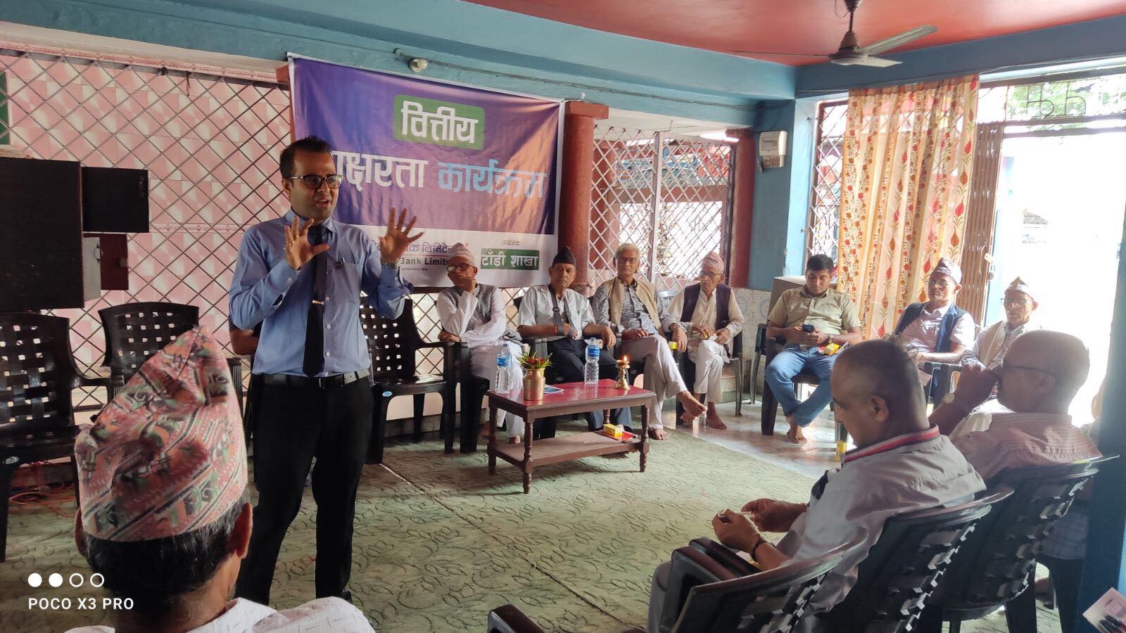 कार्यक्रममा बैंकका शाखा प्रमुख विष्णु पौडेलले आर्थिक साधन स्रोतको उच्चतम प्रयोग गरी अन्य श्रोतमा लगानी गरी धनले धन कसरी आर्जन गर्न सकिन्छ भन्ने बारेमा प्रकाश पार्नुभएको थियो । उहाँले बैंक भनेको के हो ? बचत, मुद्दति, चल्ती खाता कसरी खोल्ने, व्याजकर कति छ, कर्जा लगानी लिंदा ग्राहकले गर्नुपर्ने आवश्यक कामहरु बारेमा प्रष्ट्याउनु भयो ।
