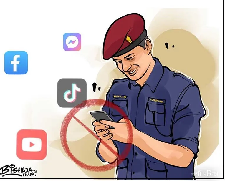 ‘सबैलाई जस्तै प्रहरीलाई पनि फेसबुक, टिकटक र युट्युबले भुलाउने भएकाले ड्युटीमा मोबाइल प्रयोग रोकेका हौँ,’ प्रहरी प्रवक्ता राईले भने, ‘कसैले प्रयोग गर्नै परे कमान्डरबाट अनुमति लिनुपर्छ ।’ उनका अनुसार ड्युटीमा मोबाइल प्रयोग गर्नेलाई पहिलोपटक सचेत गराउने र दोस्रोपटक नसिहत दिने गरिएको छ । अहिले पनि यस्तो घटनामा छानबिन चलिरहेको उनले बताए । सामाजिक सञ्जाल प्रयोगदेखि मोबाइलमा व्यस्त हुँदा पुलिसिङमा त्रुटि हुने गरेको छ ।टिकटक बनाउने ४० प्रहरी कारबाहीमा परेका छन् ।