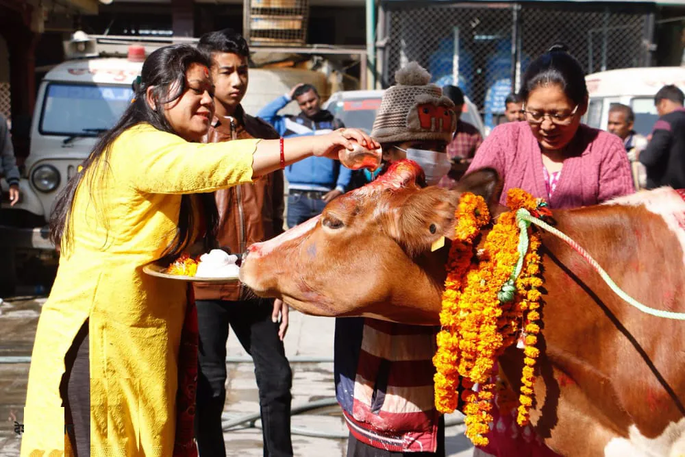 काठमाडौं,कात्तिक ८। कार्तिक शुक्ल प्रतिपदा एवं यमपञ्चक अर्थात् तिहारको चौथो दिन आज गाईको पूजाआजा गरी मीठो खानेकुरा खान दिएर मनाइँदैछ ।गाईलाई पवित्र मानी पूजा गर्ने वैदिक सनातन कालदेखिको विधि हो । गाईले दिने दूध आमाले खुवाएको दूध जत्तिकै पौष्टिक हुने भएकाले गाईलाई गौमाता भनी सम्मान गरिन्छ । स्थानीय जातका गाईमा हुने जुरोले सूर्य र चन्द्रमाबाट ऊर्जा लिई दूध, गहुँत र गोबरका माध्यमबाट मानिसमा शक्ति दिने भएकाले गाईको महत्व छ भनी आधुनिक विज्ञानले पनि प्रमाणित गरेको छ ।