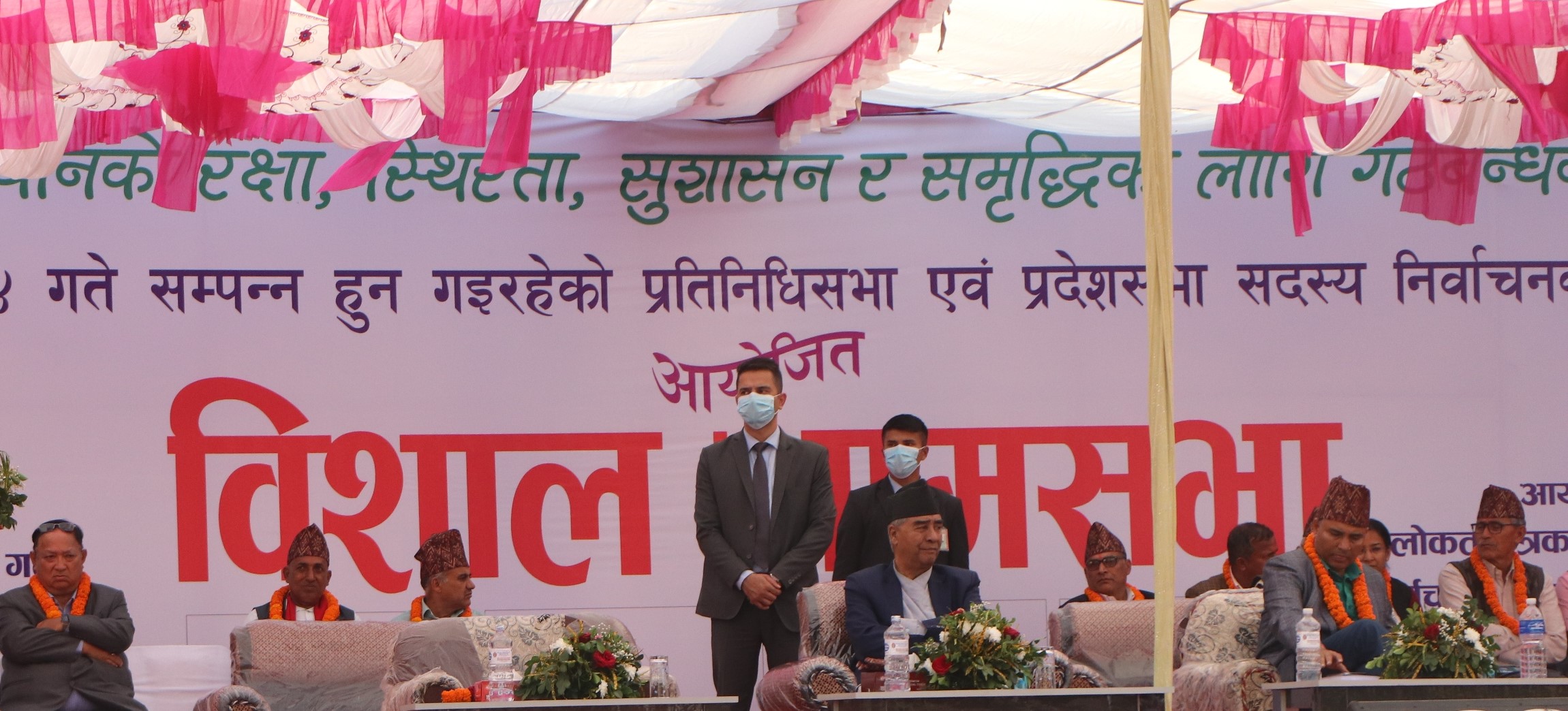 चितवन, २६ कात्तिक । प्रधानमन्त्री एवं नेपाली काङ्ग्रेसका सभापति शेरवहादुर देउवाले देशलाई धनी बनाउन गठबन्धनले जित्नु पर्ने बताउनुभयो । लोकतान्त्रीक–बाम गठवन्धन चितवनले आज भरतपुरको गेष्टहाउस चौरमा आयोजना गरेको आमसभालाई सम्बोधन गर्दै उहाँले यो राष्ट्रलाई स्थायी शान्ति स्थापित गर्न र स्रोतको विकास गरेर देशलाई धनी वनाउन गठवन्धनले जित्नुपर्ने बताउनु भएको हो ।