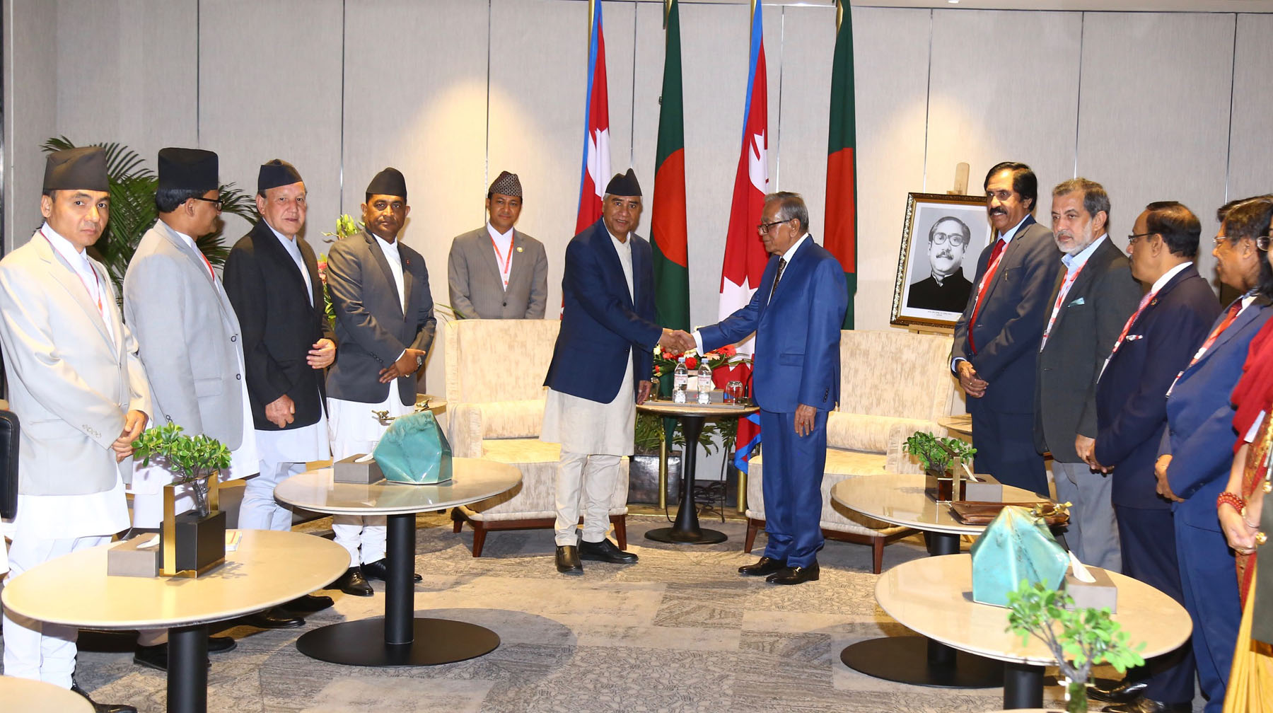 काठमाडौँ । नेपाल भ्रमणमा रहनुभएका बङ्गलादेशका राष्ट्रपति मोहम्मद अब्दुल हमिदसँग नेपाली काङ्ग्रेसका सभापति शेरबहादुर देउवाले आज शिष्टाचार भेट गर्नुभएको छ । भेटमा दुई देशबीच आपसी हित, आर्थिक साझेदारी र विकासका विषयमा समेत छलफल भएको भेटवार्तामा सहभागी काङ्ग्रेस नेता डा नारायण खड्काले जानकारी दिनुभयो ।
