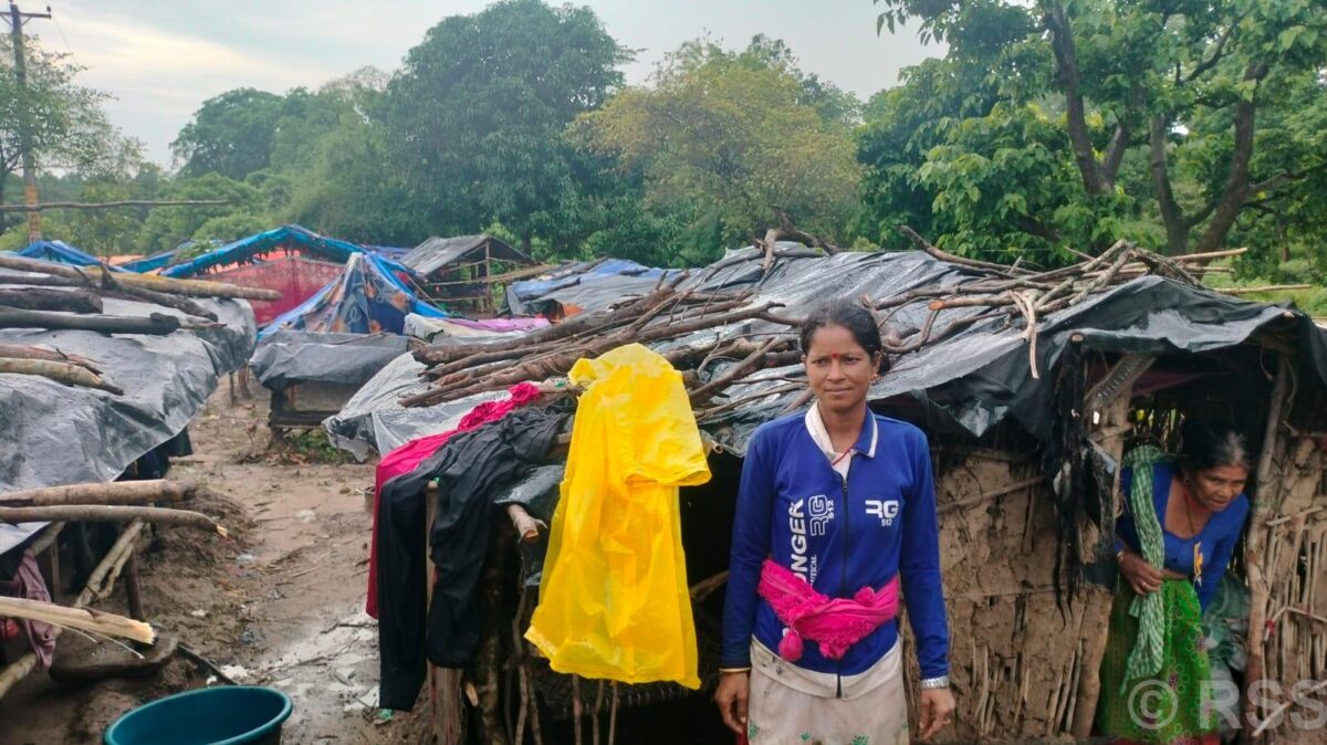 केही भूमिहीन परिवारले दातृ निकायले उपलब्ध गराएका त्रिपाल, केहीले पुराना च्यातिएका प्लाष्टिक र कपडाले ढाकेर झोपडी बनाएका छन् । जति पानी बाहिर पर्छ, त्यति नै पानीभित्र चुहिने भएकाले बालबालिकालाई काखीमा च्याप्दै भिज्दै रात काट्नुपरेको दलबहादुर बोहराले बताउनुभयो ।
