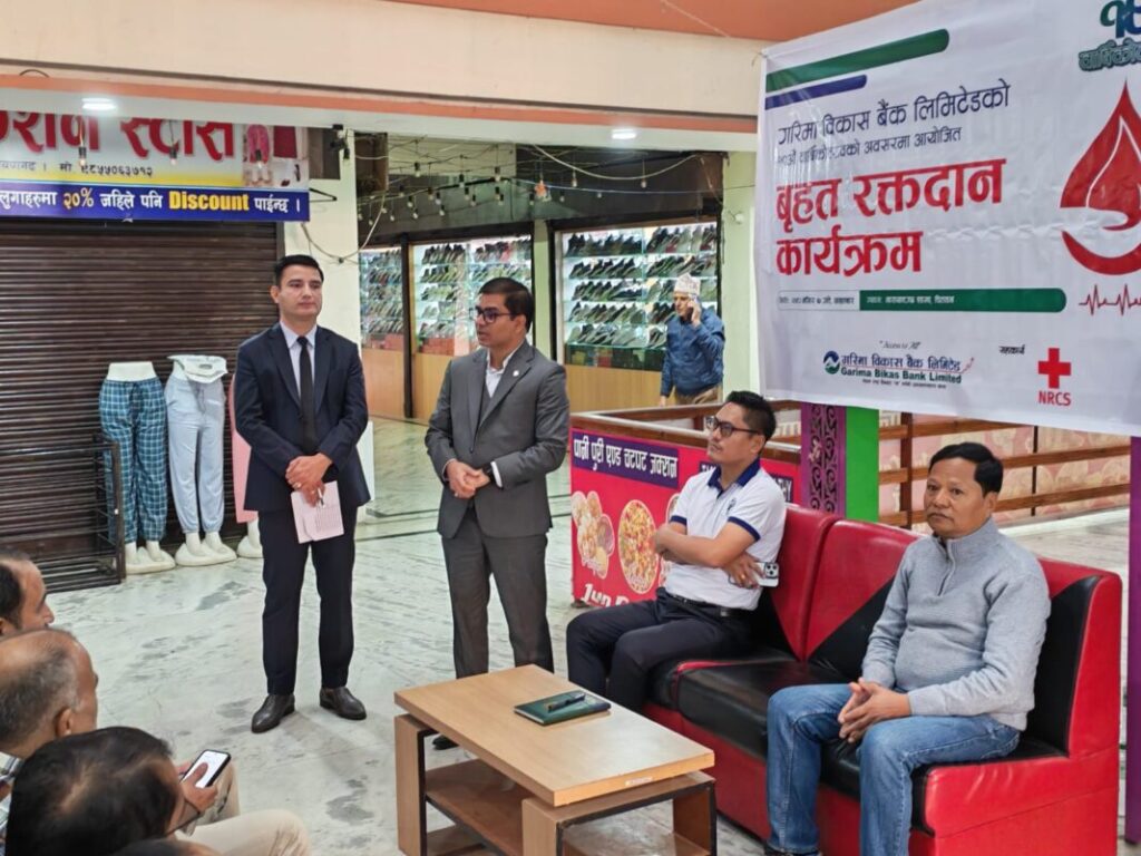 चितवन, ७ मंसिर । गरिमा विकास बैंक लिमिटेडले आफ्नो १९ औं वार्षिकोत्सव कार्यक्रममा देशका विभिन्न स्थानमा १९ वटा सामाजिक उत्तरदायित्वमूलक कार्यक्रम गरेको छ । बैंकले आठ स्थानमा रक्तदान कार्यक्रम सञ्चालन गरेको छ । ती कार्यक्रमबाट ६०२ युनिट रगत संकलन भएको हो ।