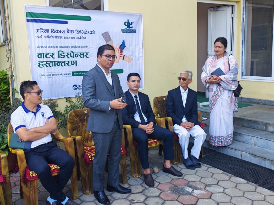 यसैगरी सत्य साई राष्ट्रिय परिषद् नेपाल चितवनलाई बैंकले आजै वाटर डिस्पेन्सर हस्तान्तरण गरेको छ । बैंकका नायव प्रमुख कार्यकारी अधिकृत रेग्मीले परिषद्लाई उक्त डिस्पेन्सर हस्तान्तरण गर्नुभएको हो ।