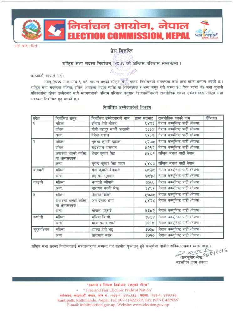 राष्ट्रियसभा सदस्य निर्वाचन : यस्तो छ अन्तिम मतपरिणाम