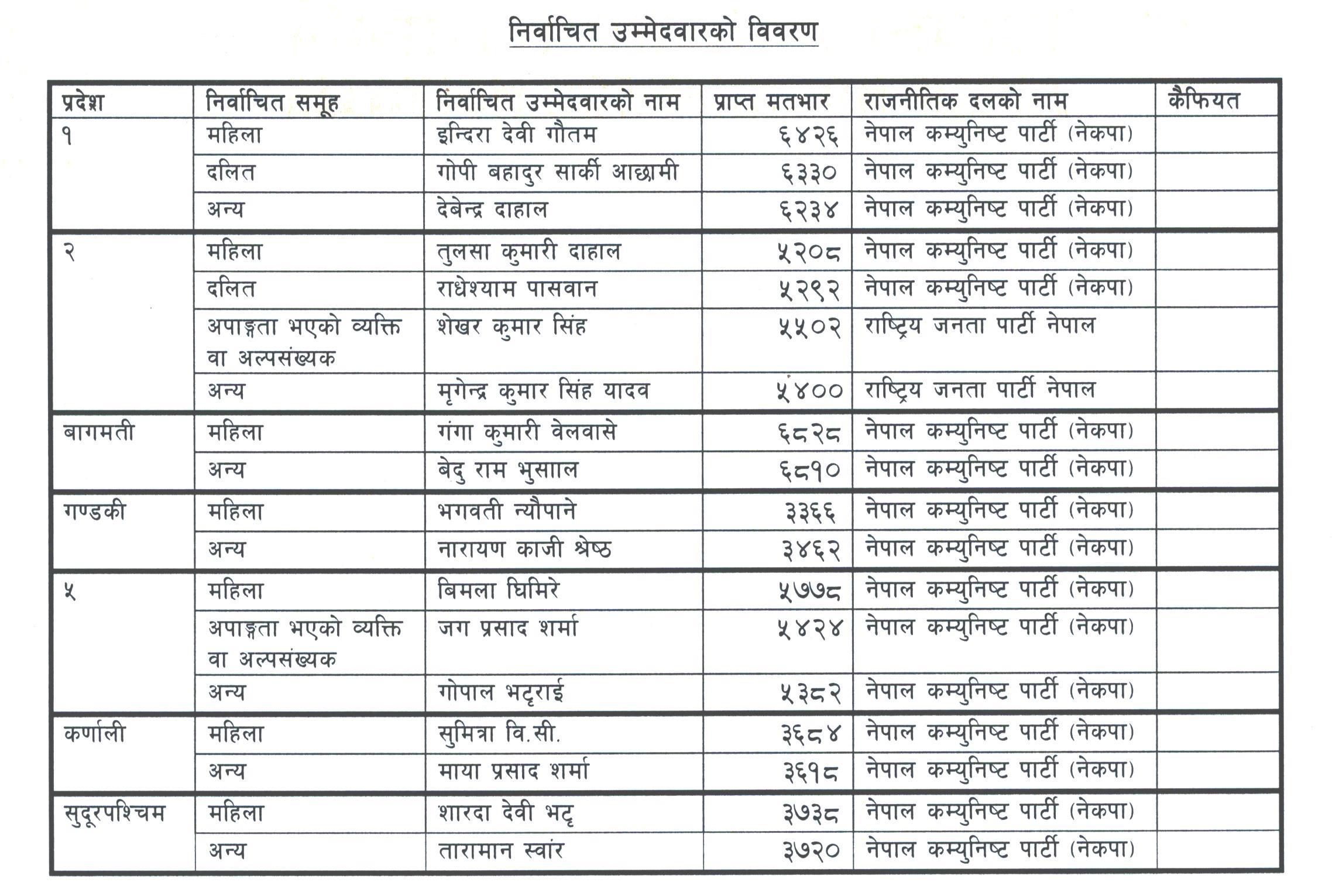 अन्तिम मतपरिणाम : (स्रोत : निर्वाचन आयोग, नेपाल)