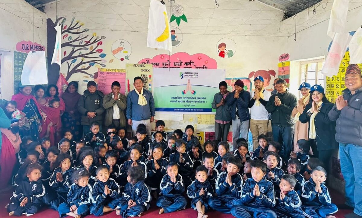 कामना सेवा विकास बैंकद्वारा चेपाङ बालबालिकालाई न्यानो कपडा वितरण
