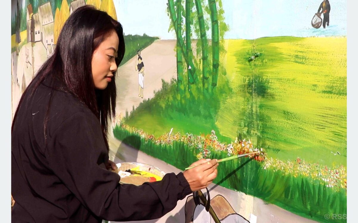 नारायणगढ (चितवन), २९ पुस । खैरहनीको खिचरा महोत्सवस्थलमा पुग्दा एउटा पर्खालले धेरै दर्शकलाई केहीबेर रोक्छ । रङरेखाले सजिएको त्यो पर्खाल कुनै साधारण ‘वाल’ पेन्टिङ होइन, त्यो थारु समुदायको इतिहास, संस्कृति र जीवनशैली बोलिरहेको क्यानभास हो । चितवनको राप्ती नगरपालिका–६ बेल्डियाकी कलाकार सोमिना चौधरीले त्यो क्यानभासमा वास्तविकता भर्नुभएको हो ।