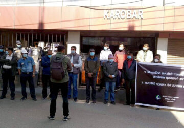 काठमाण्डौं । कोरोना महामारीको बहानामा अन्यायपूर्वक निष्काशित पत्रकारको स–सम्मान पुनःवहाली गर्नुपर्ने माग गर्दै नेपाल पत्रकार महासङ्घले तीन सञ्चारगृहमा धर्ना दिएको छ । पत्रकारले कोभिड–१९ को समयमा काम गरेको तलब–भत्ता उपलब्ध गराउनुपर्ने माग गर्दै अन्नपूर्ण पोष्ट दैनिकको प्रकाशन गृह, नेपाल...