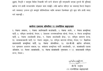 काठमाडौँ, २३ जेठ । विभिन्न २२ राजनीतिक संगठनको कार्यगत एकता समुहले संसदबाट पारित नै नभएको एमसीसी परियोजना अन्तर्गतको विद्युतको हाइटेन्सन लाइनका लागि अध्यादेशमार्फत छुट्याएको बजेट र व्यापार घाटा कम गर्न भन्दै ढुंगा गिटी निकासी गर्ने निर्णय खारेज गर्न माग...
