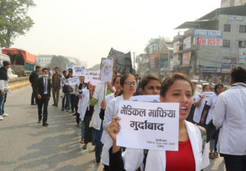 चितवन । चितवन मेडिकल कलेजमा गठन भएको चिकित्सा शिक्षा सङ्घर्ष समितिको अगुवाइमा आज बृहत् प्रदर्शन भएको छ । मेडिकल कलेजहरूले असुल गरेको गैरकानूनी शुल्क फिर्ता नभएको विरोधमा विद्यार्थी, अभिभावक तथा नागरिक समाजको अगुवाइमा प्रदर्शन गरिएको हो । वीरेन्द्र क्याम्पसबाट...