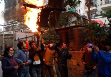 काठमडौँ, १३ माघ । पेट्रोलियम पदार्थको मूल्यबृद्धिविरुद्ध नेत्रबिक्रम चन्द विप्लवु नेतृत्वको नेपाल कम्युनिष्ट पार्टीनिकट विद्यार्थी संगठन अखिल क्रान्तिकारीले बुधबार प्रधानमन्त्री शेरबहादुर देउवाको पुतला जलाएका छन्। विद्यार्थीहले चाबहिलस्थितल पशुपति क्याम्पसअगाडि प्रधानमन्त्री देउवाको पुतला जलाएका हुन्। तस्बिर : न्युज कारखाना ...