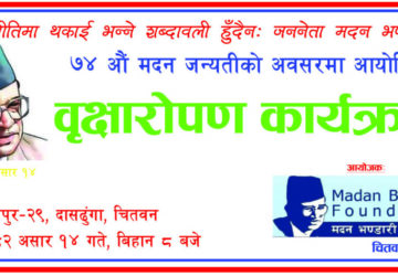 ७४ औं मदन जयन्तीमा चितवनको दासढुंगामा वृक्षारोपण गरिने